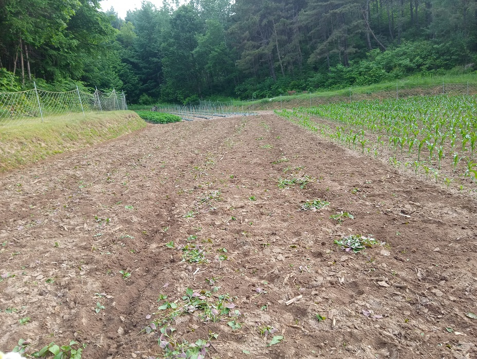 2주 전에 김을 맸던 옥수수밭에 돌아나는 풀들을 뽑아내며 추비 준비를 한다.