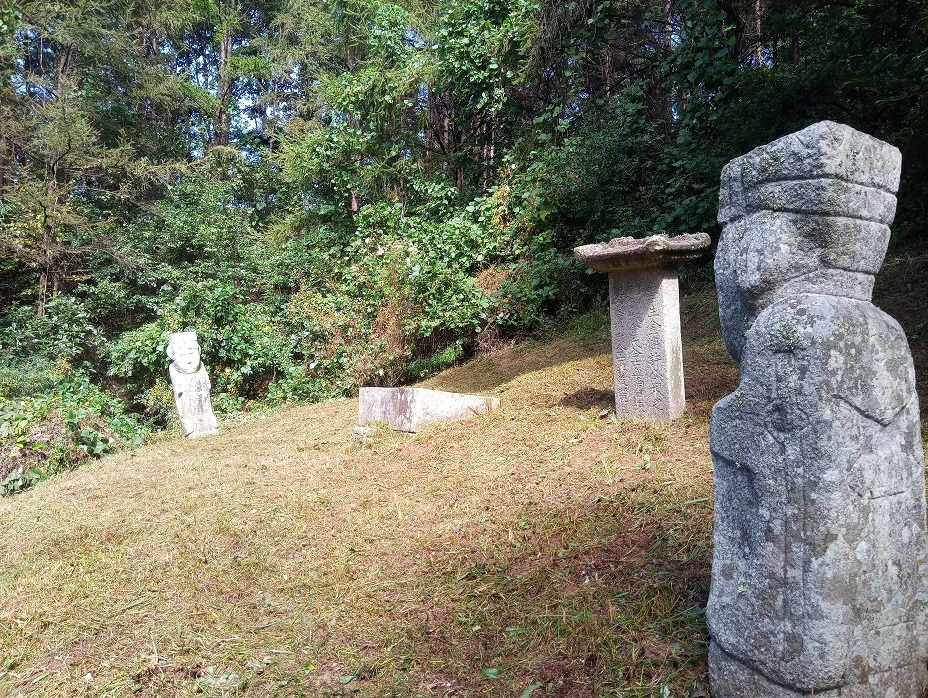오랜 세월의 조상묘 2기를 깎는다.